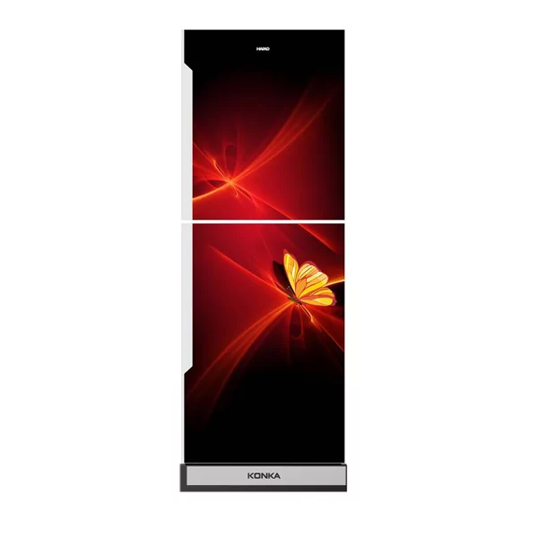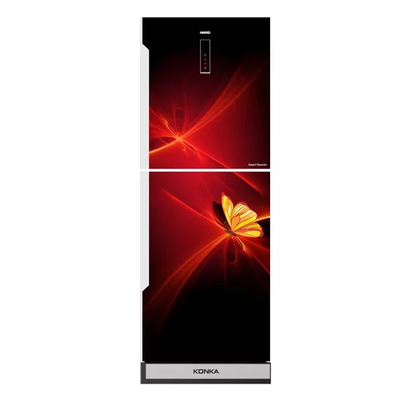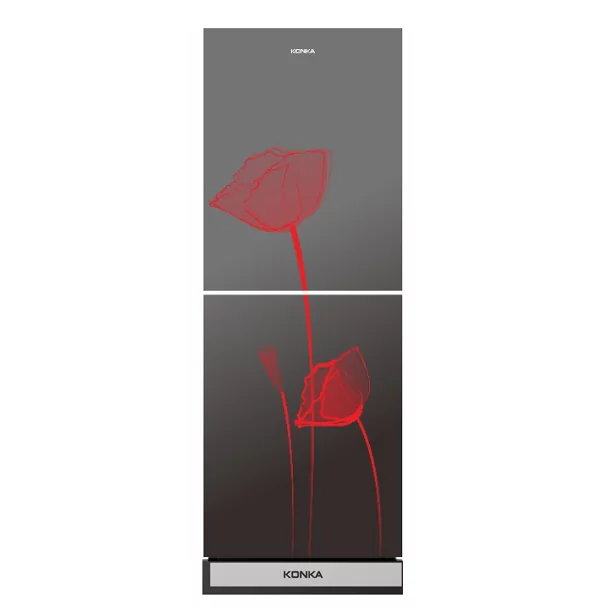 KONKA Refrigerator-KRB-270VB- Glass Mirror Red Tulip, Bottom Freezer (270 LTR)